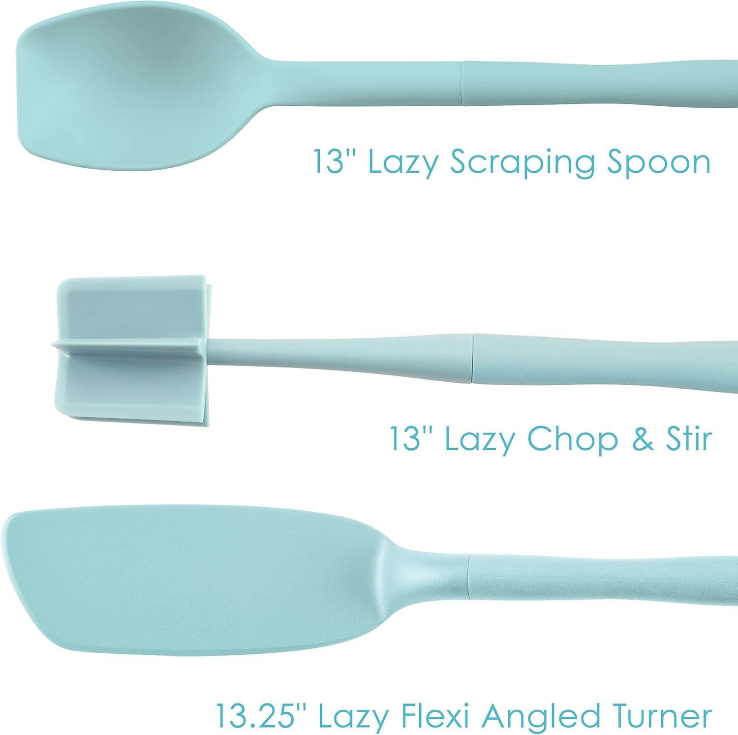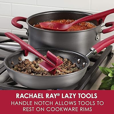 Knows all about putting more gain with less strain into cooking and serving, and her lazy tools bring that convenience to home cooks everywhere. Lazy tools from rachael ray are designed to work like a champ and rest like a charm. Ideal for use with nonstick interiors because they don't scratch or scrape, the nylon turner, crush & chop. Brightly colored lazy tool set comes complete with a spoonula, slotted spoon and solid spoon for all of your rachael ray kitchen utensil needs. The ladle and spoon have notched handles so you can easily rest them on the edge of pots and pans, and the stainless steel bench scrape and food mover is a handy multipurpose tool for meal prep or to slice pastry dough when baking.